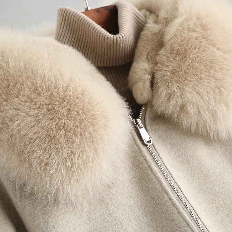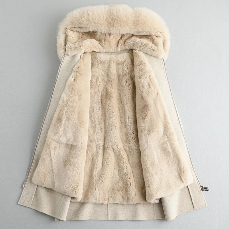 Special Offer Frauen Jacke Winter Echten Pelzmantel Weibliche Luxus Kaninchen Pelz Liner 100% Wolle Mantel Fuchs Pelz Kragen Warme Lange Jacken MY4389 S Discount 90% Today!