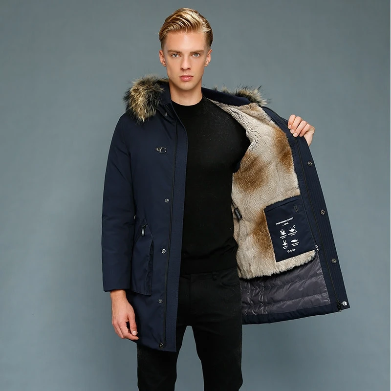 Special Offer Unten Herren Winter Jacke Parka Echt Kaninchen Pelz Liner Weiße Gans Unten Jacke Waschbären Pelz Kragen Warme Mantel Parkas KJ3202 Discount 30% Today!