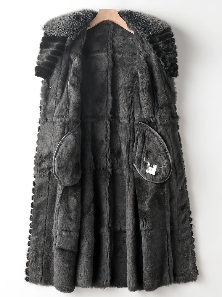 Special Offer Frauen Natürliche Kaninchen Pelzmantel, Fuchs Kragen, Frauen Langen Mantel, Warme Winter Mantel, Frauen Mode Kleidung Pph2289 Discount 80% Today!