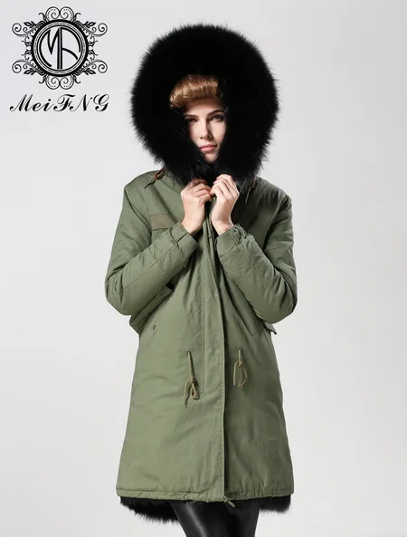 Special Offer Winter Mode Parka Mit Echt Fuchs Pelz Mantel In Schwarz Pelz Farbe, Grün/navy/schwarz/gelb Parka Für Männer Oder Frau Discount 0% Today!
